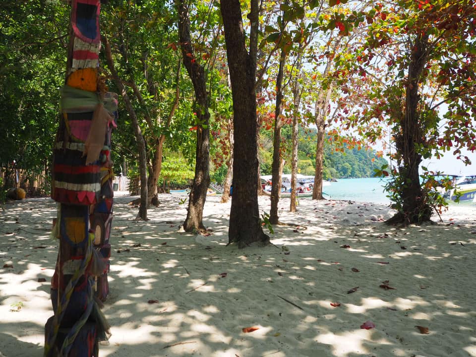 We visited the Moken Village, and learnt about their traditions and culture. The Moken people are a seafaring ethnic group of Austronesian origin who still mostly live a seminomadic lifestyle. Many of the men work in tourism on the longtail boats we were being transported in, while the women make jewellery and sell to the tourists to help earn money. The village is made up of many houses made from palm leaves, up on stilts. Many houses were lost after a fire struck the island and have since been rebuilt with help from the government. The newer houses are still built from palm leaves but have solar panels and electricity.